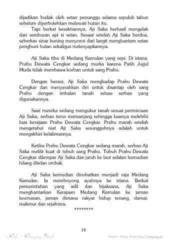 dari semburan api si setan. Sesaat setelah Aji Saka berdoa,