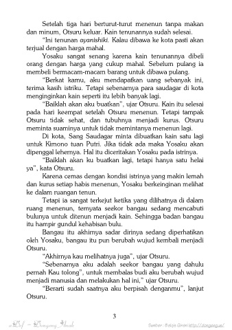 dan minum, Otsuru keluar. Kain tenunannya sudah selesai.